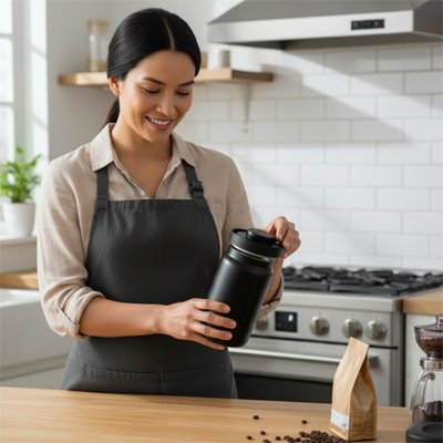 Notre Boîte à café Design Hermétique préserve la fraîcheur de votre café moulu ou en grains. Son système de fermeture hermétique empêche l'air et l'humidité de détériorer les arômes de votre café.