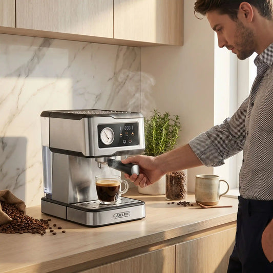 Vous rêvez de déguster un véritable expresso comme au café ? Nos cafetières expresso vous permettent de retrouver cette expérience authentique directement dans votre cuisine comme notre Machine expresso manuelle | Barista 20bars. La pression parfaite pour extraire tous les arômes et obtenir cette crème onctueuse qui fait la signature d'un bon expresso.